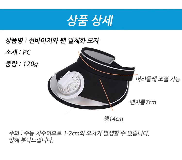 더운 날씨에 필수템, 선바이저 팬 모자 디테일